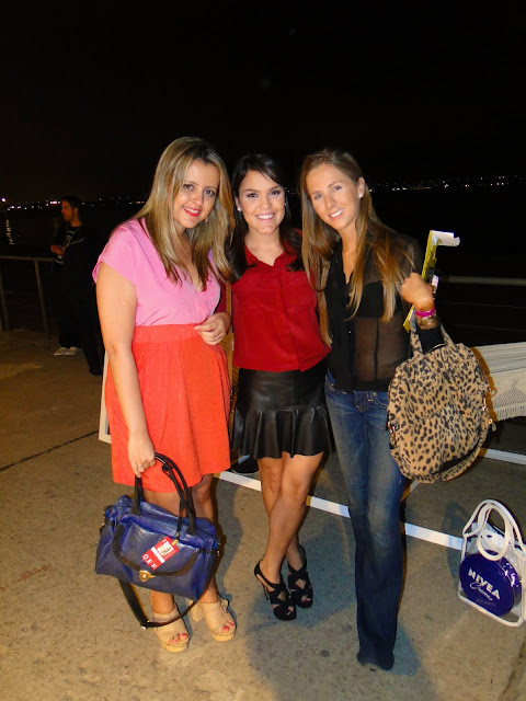 Thereza Chamas do blog Fashionismo (toda trabalhada no colorblocking), eu, e Paula Aziz estilista da Fabulous Agilità (trabalhada nos 70’s de flare jeans + transparência)