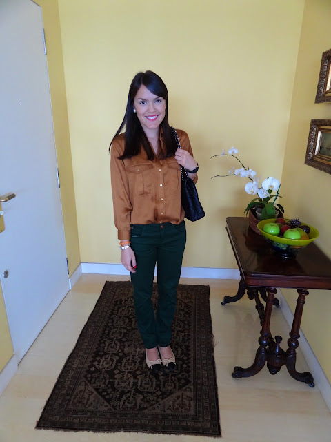 Nesse look do dia bem basicão, eu resolvi fazer um mix de dois tons que já estão fazendo sucesso no hemisfério norte e que prometem invadir nosso inverno 2012: verde musgo e mostarda. “Ai Lari, mas ainda nem chegou o verão…” Eu sei que é um tanto cedo para falarmos de tendências “invernísticas”, mas de tanto ter visto essas cores nas vitrines, eu fiquei com esse colorblocking versão fechado na cabeça.