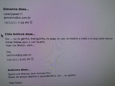 Ice … eu te ganho, branquinho, te pego, te uso, te mostro a todos e te peço para marcar horas felizes para a Lari Duarte.
