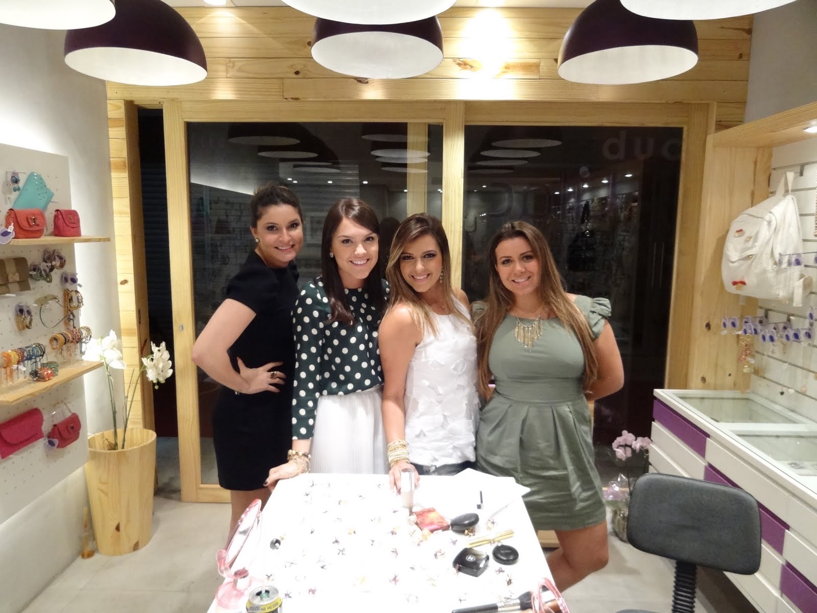 Tudo aconteceu na própria loja da marca em Ipanema, que com espelhinhos, tornou-se nossa sala de aula. Para completar a farra, Camilla Marins do blog Inventando Moda , Tati Canto do Love Shoes Blog , e as próprias sócias da Lilac, Gabi e Nicole. Agora realizem a cena, cinco mulheres falantes reunidas e muitas maquiagens, faltou tempo para tanto assunto! Mais uma vez, quando eu vi já estava há 4horas lá e nem tinha percebido. Entre muitas risadas, erros, e acertos, foi uma noite ótima. Eu super recomendo esse programa, reunir as amigas para um curso de make. Além das trocas de dicas, é diversão garantida.