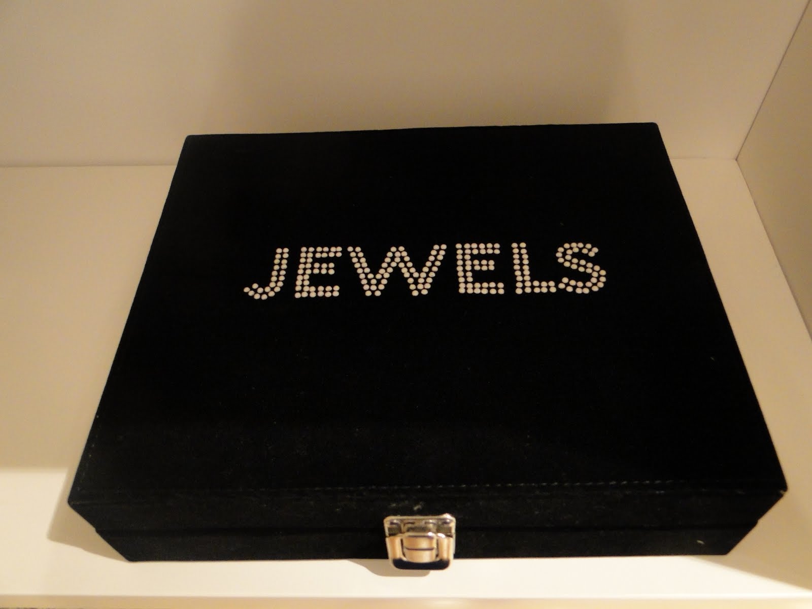 Assim, eu fui procurar para comprar um porta-jóias. Infelizmente, em lojas especializadas eu só achei a partir de R$300,00 – facada. Decidi pesquisar na internet, e entrei no site da Kolut (para acessar, só clicar aqui) . Afinal, a loja virtual é parceira do blog e poderia ter um modelo com preço justo, né? Dito e feito. Vi esse porta-jóias escrito Jewels em strass (bem perua do jeito que eu gosto), e fui logo falar com a Camila Motta, sócia do site. De quebra, encomendei o cabideiro para pendurar pulseiras. Hoje mesmo ela me entregou as duas peças, e eu adorei! já organizei tudo.