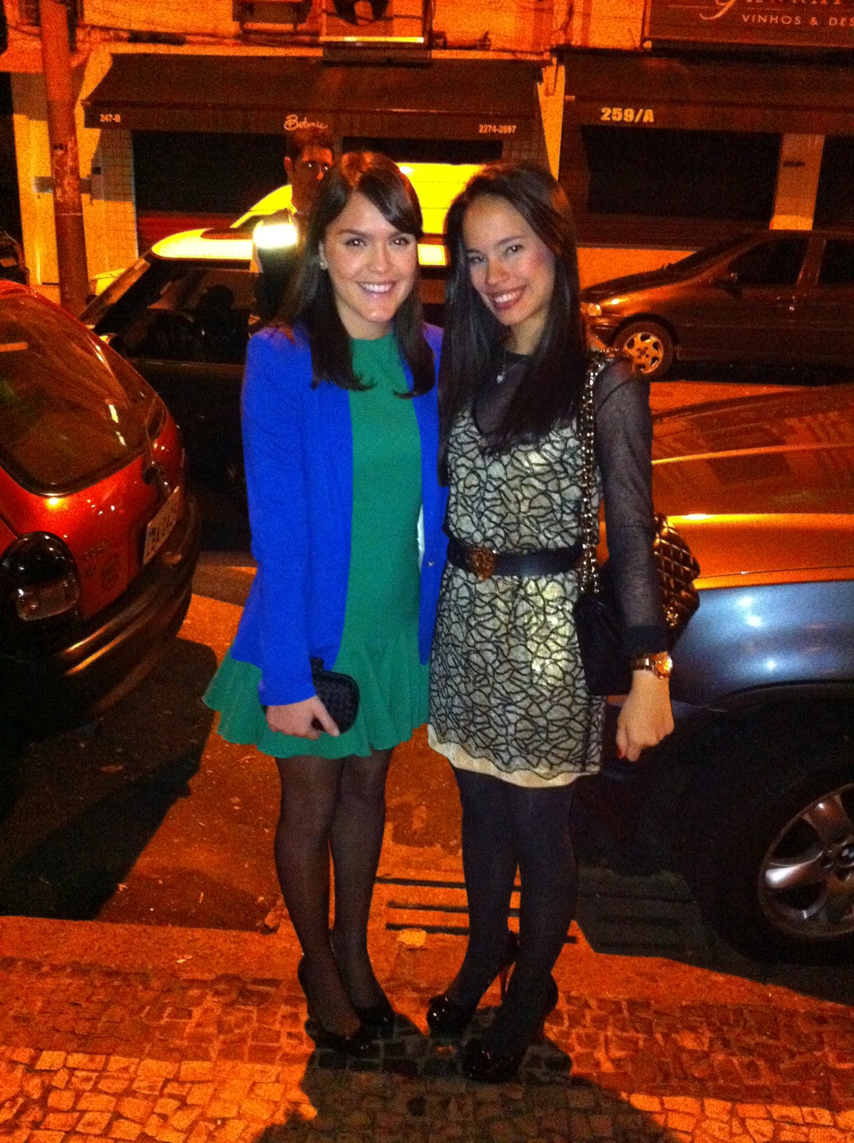 Flagra na porta do Sushi Leblon (post aqui) com a Maria Vilela! Adorei o look que ela usou, amo o trabalho desse vestido da Lucci, e estou louca para fazer um assim.