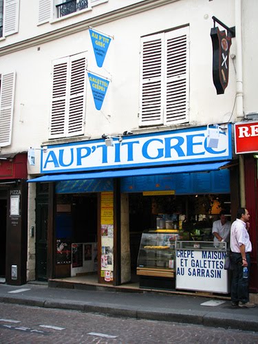 Au P’tit Grec – MELHOR crepe de Paris!!! Duvido existir um melhor que esse, eu dou minhas bochechas gordas a tapa hahaha Au P’tit Grec fica na Rue Mouffetard, endereco de muitos jovens estudantes. Diferente da Champs Elysées e sua aglomeração de turistas, a Mouffetard é frequentada por parisienses, que vão até lá comer um crepe e depois jogar conversa fora em um dos vários bares da região. Assim que você chega na creperia, o atendente (típico francês) já diz logo um “bonjour” bem alto, e pergunta o sabor que vc quer. Em seguida o próprio começa a fazer. Tudo na maior informalidade e clima despojado. Entre a enorme variedade de sabores, peça o básico jambon e fromage avec tout (presunto, queijo, alface, tomate e rodelas de cebola). Como sobremesa o tradicional de nutella. E não se esqueça, vá preparado para sair bastante satisfeito. Além de ser o mais gostoso, é ,sem dúvida alguma, o maior crepe de Paris. Delicieux!